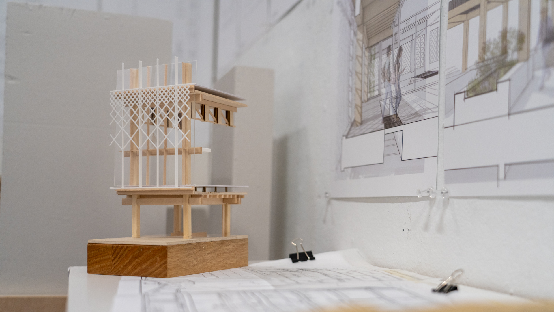The team developed a phased master plan for St. Ambrose Episcopal Church that weaves together faith, ecology and community. An outdoor worship space, food forest and apiary extend the church’s mission beyond its walls. Through careful “architectural pruning and grafting,” they reorganized an existing office addition while preserving the church’s identity. Produced entirely by hand through drawings, models, paintings and collages, the work reflects the same care the church extends to its community.